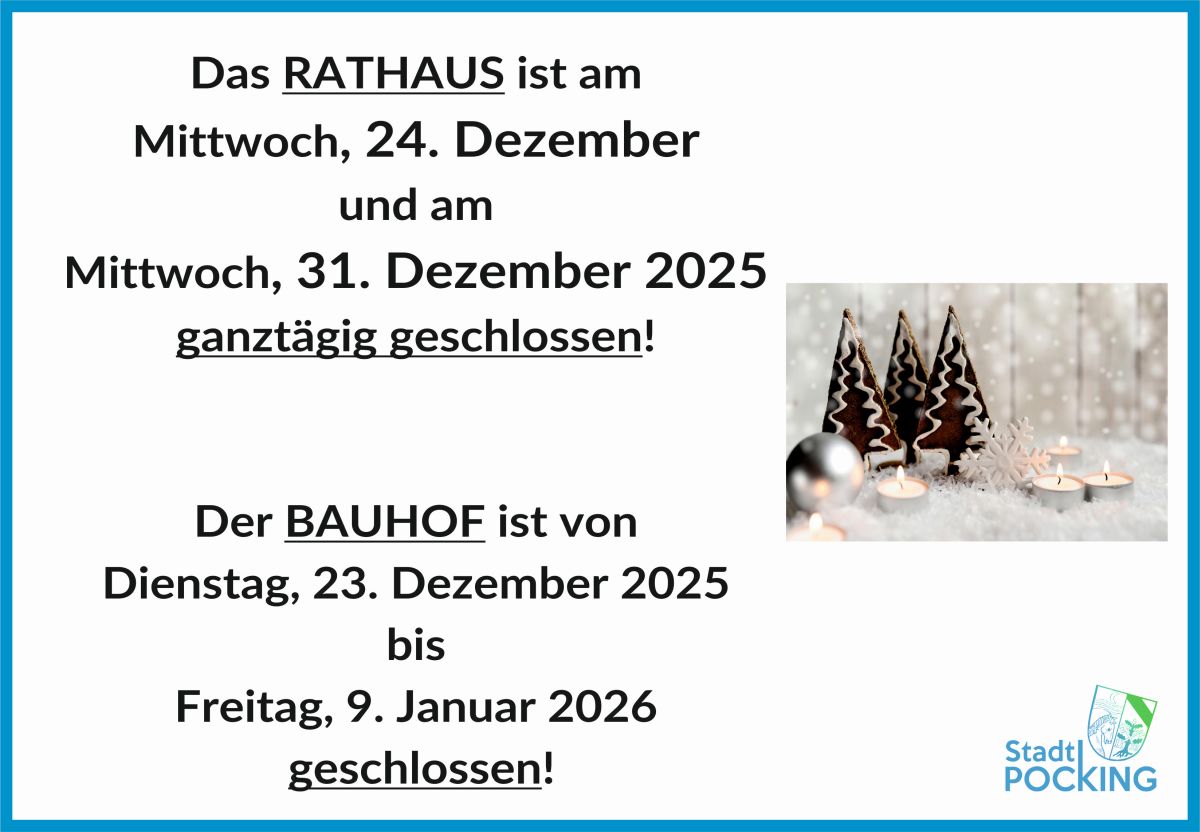 Auch die Information des Rathauses steht unter 08531 / 709-0 oder per E-Mail unter Diese E-Mail-Adresse ist vor Spambots geschützt! Zur Anzeige muss JavaScript eingeschaltet sein! zur Verfügung.